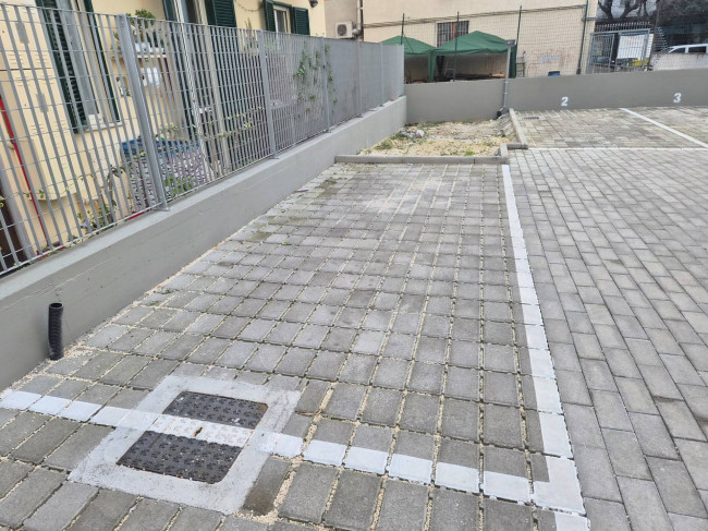 l'area recintata del posto auto è dotato di due cancelli carrabili elettrici con due ingressi e due uscite, una su Via Meneghini e l'altra su Via Lanciano, con facilità di manovra,